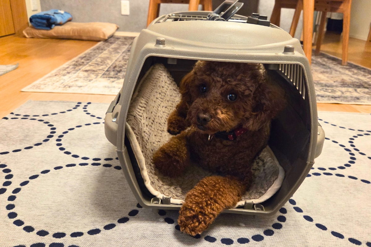 そこで、移動専用として少し小さめのクレートを用意しました。