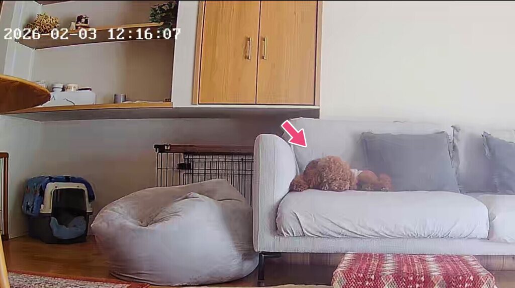 ある日のハルのお留守番の様子を見守りカメラで撮影🐶👍